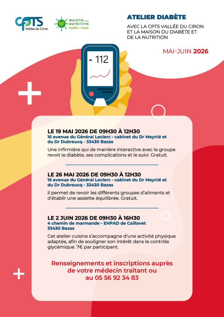 Des ateliers diabètes sont organisés par la CPTS en partenariat avec la maison du diabète et de la nutrition.